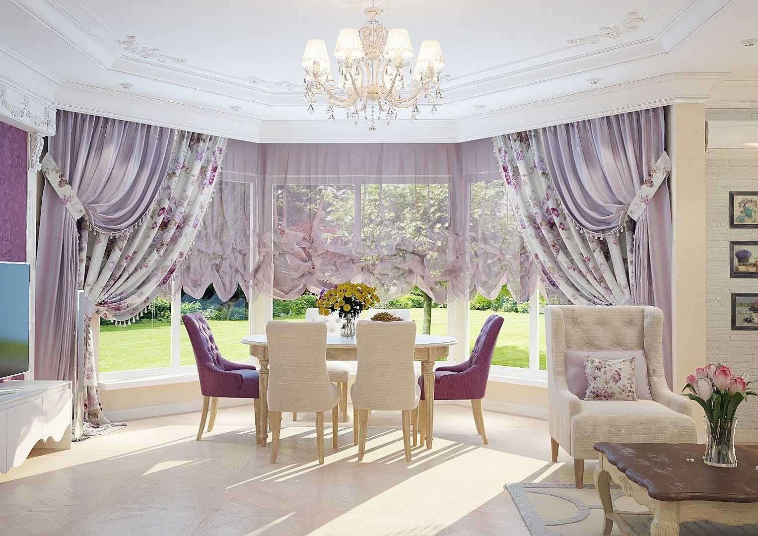 Если шторы имеют сложный покрой, лучше всего драпировать максимально простым способом, без украшений