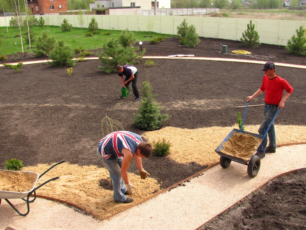Для выравнивания выбирайте жаркий ясный день без намека на дождь. Чтобы избавляться от ям и впадин, можете использовать почву со склонов или плодородную из магазина. Затем свежий слой засыпают торфом. Для глинистого грунта землю смешивают с песком. Благодаря ему в почву будет эффективнее проникать вода и воздух.
