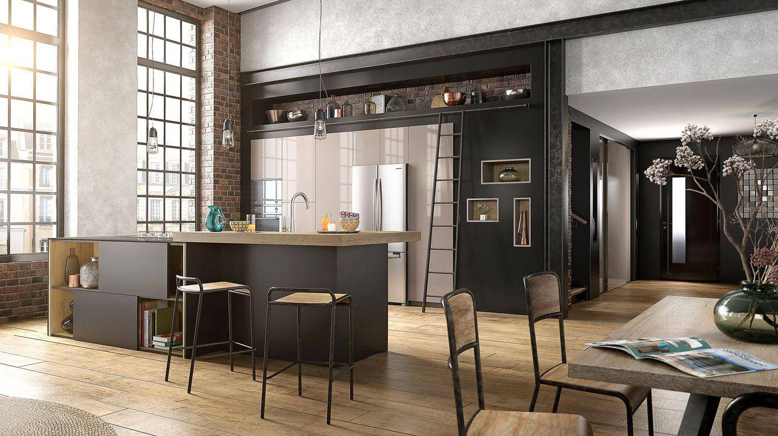 - Размещение холодильника за обеденным столом (см. фото), барной стойкой или столом-островом.