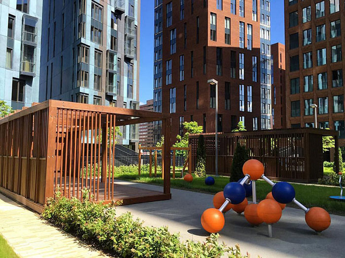 Большое внимание заказчики уделили безопасности. Все паркинги и дороги расположены под землёй, дворы и прогулочные зоны остаются исключительно пешеходными