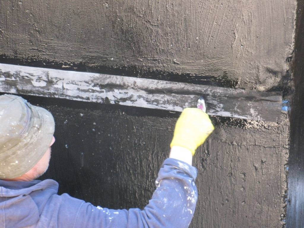 Обмазочная гидроизоляция стен осуществляется путем нанесения битумных и полимерных мастик. Эта технология подходит для обработки любых стеновых поверхностей. Перед началом обмазки щели, трещины и существенные неровности следует заштукатурить
