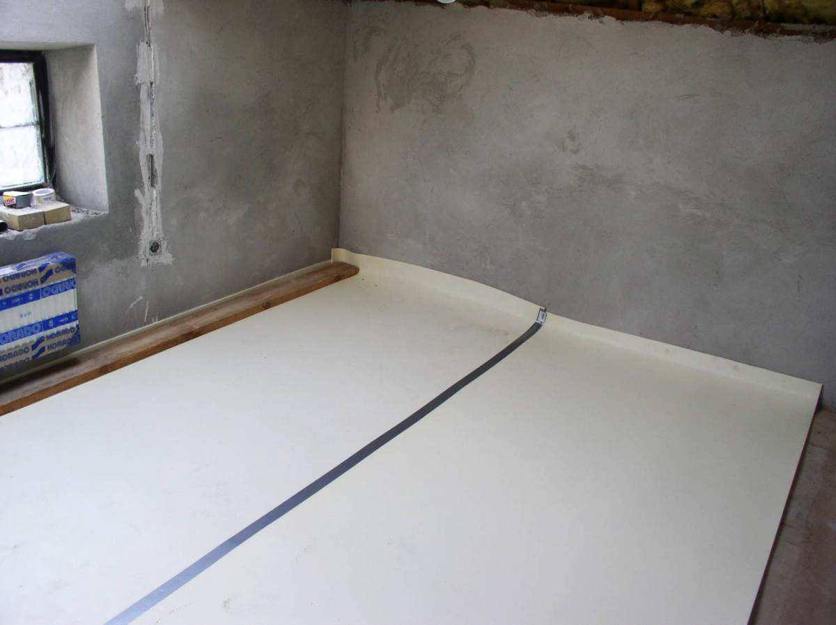 - Поверх стелют пароизоляционное полотно.