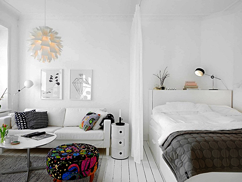Зонирование текстилем: делим комнату на спальню и гостиную