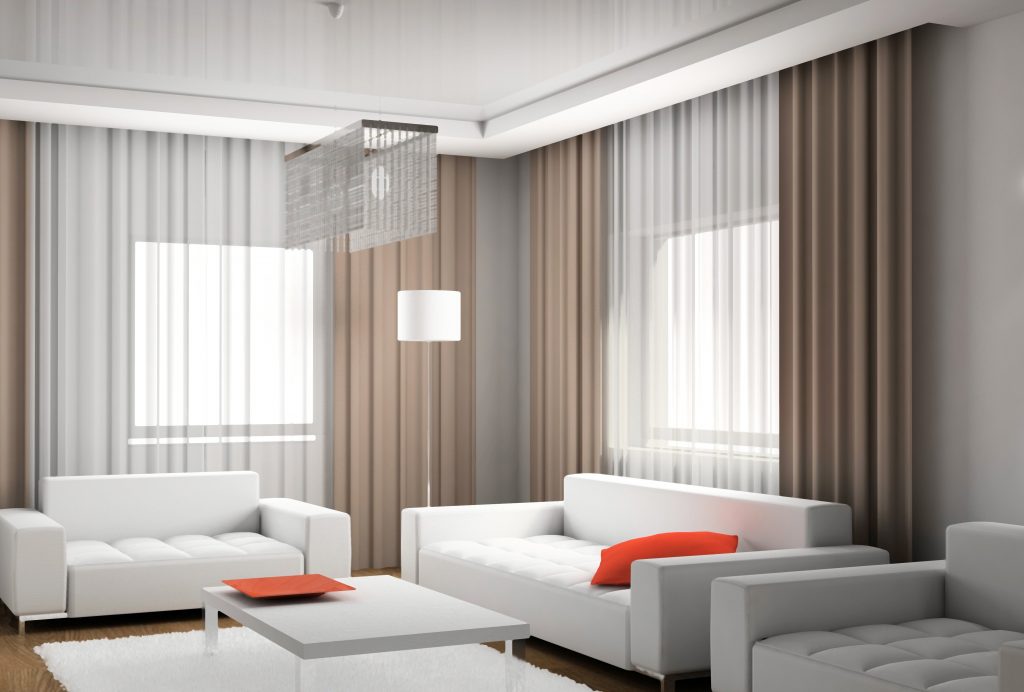 Из-за поступления света в большом количестве, комната кажется выше и больше, при выборе штор, следует учитывать этот момент