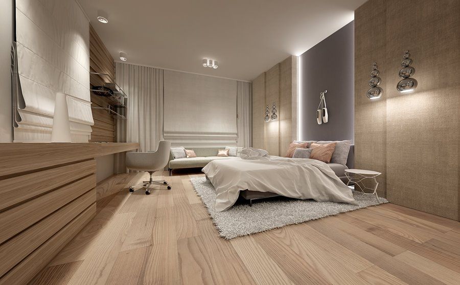 Бежевый, серый и коричневый цвет в интерьере спальни