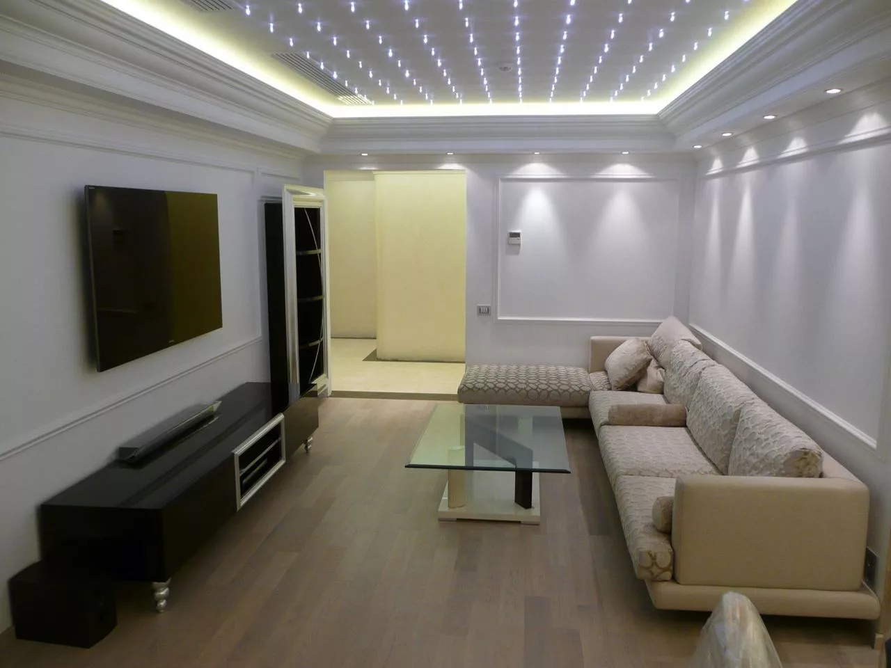 | Светодиодное | Освещение такого рода отличается низким энергопотреблением, значит, за свет нужно будет платить меньше. Также отметим, что с помощью таких осветительных приборов можно воплотить уникальные идеи на потолочной поверхности: создавать невообразимые узоры, световые эффекты | Как и предыдущий вариант, светодиодную подсветку необходимо встраивать в подвесные потолки |