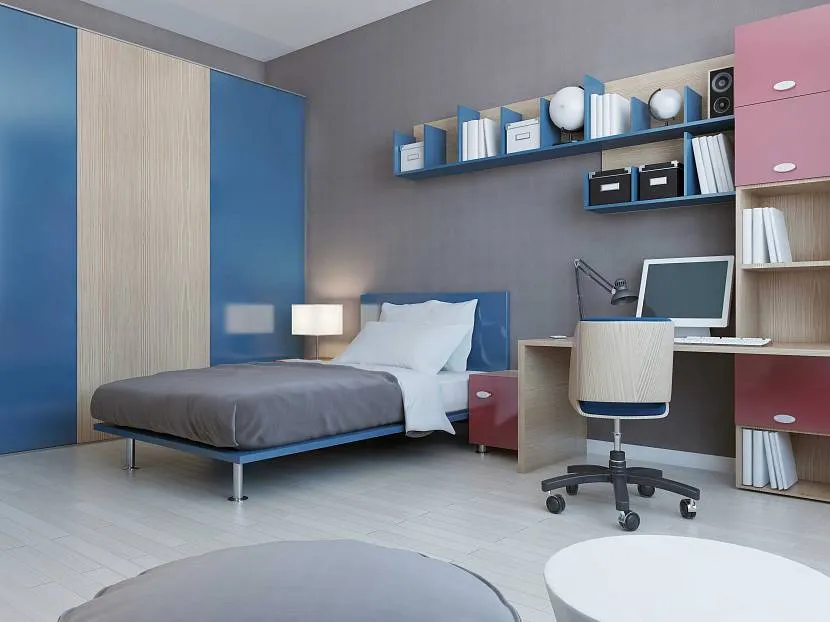 Тематический интерьер. Очень часто дизайн спальни не укладывается в существующие стили, а строится на основе какой-либо детской темы (про волшебников, принцесс, героев сказок или мультиков). В комнате мальчика используется тема автогонок, футбола, супергероя; такая детская в серо голубых тонах, как правило, дополняется красным, оранжевым, синим декором.