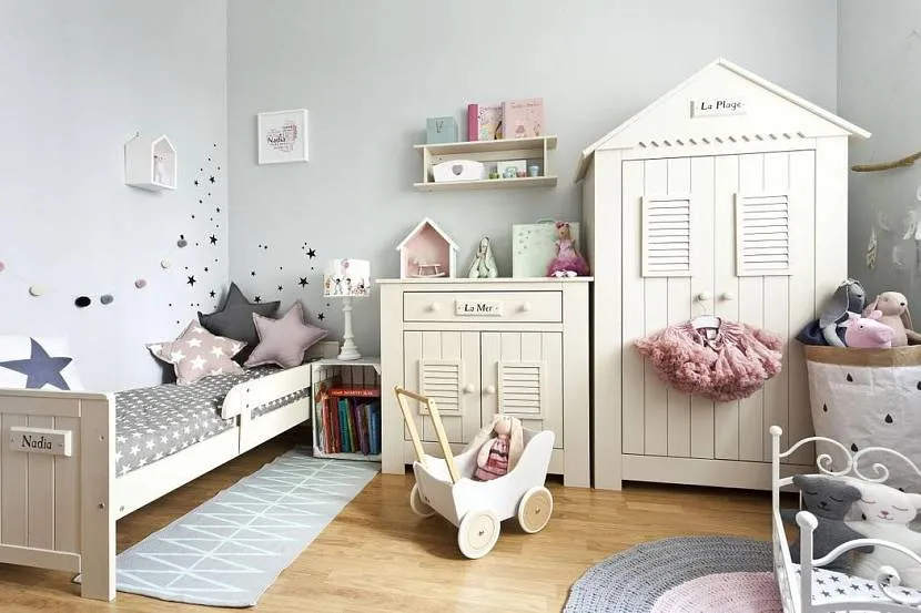 СоветСерый важен для детей с гиперактивностью. Они нуждаются в спокойствии и обстановке, которая будет уравновешивать избыток эмоций. Однако дополнительные яркие детали обязательно добавляют в детскую: покрывала, столики, ящики для игрушек, шторы.