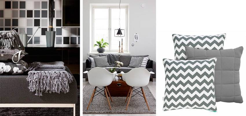 Серые оттенки на лампах и люстрах, особенно на хромированных, металлических элементах добавят в интерьер элегантности. Выделяющиеся декоративные подушки и одеяло на спинке дивана будут стимулировать нас отдохнуть и провести время вместе с семьей или друзьями в гостиной.