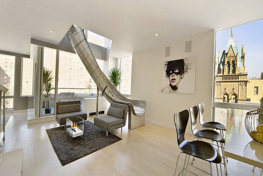 В таком жилище не бывает проводов или шнуров от техники. Их чаще всего убирают за фальш-перегородки, подвесные потолки. Обычные батареи заменяются теплым плинтусом или даже стеной.