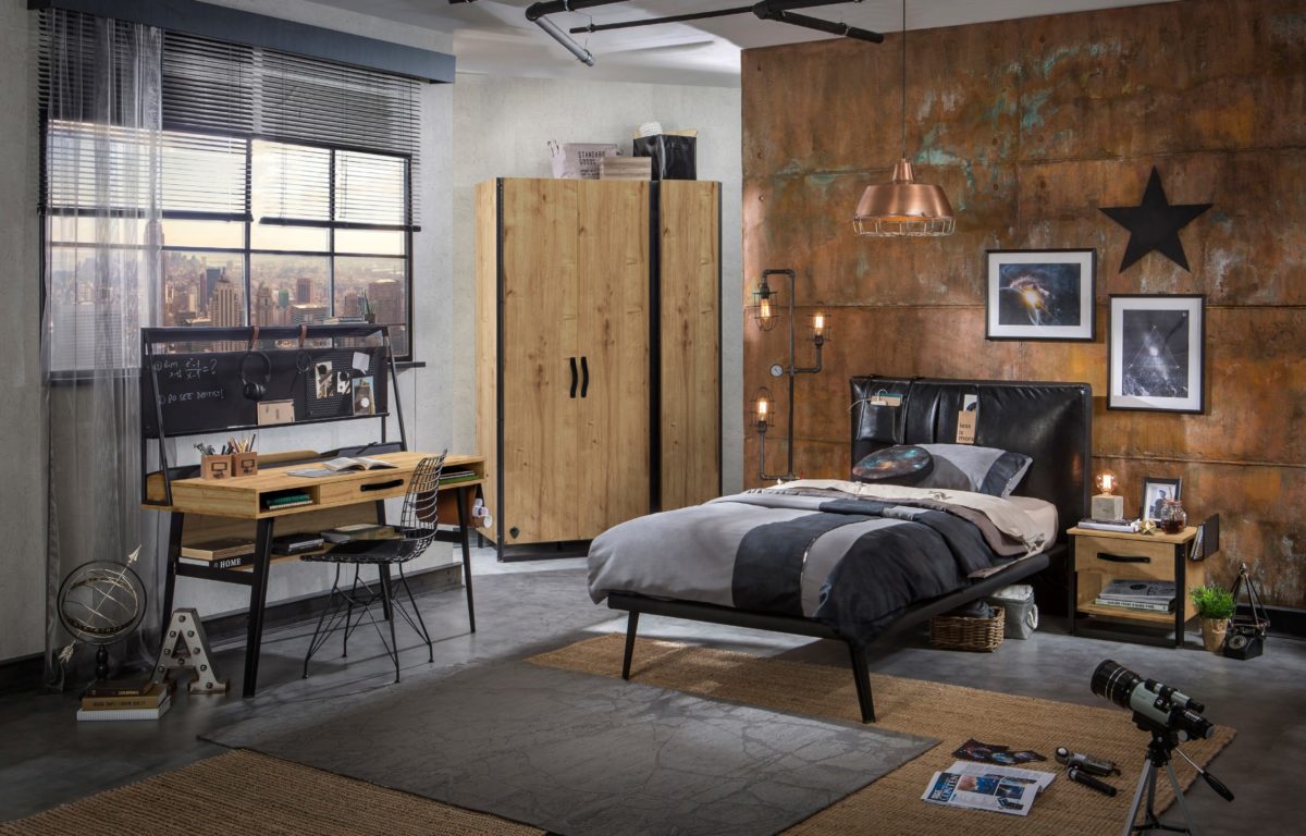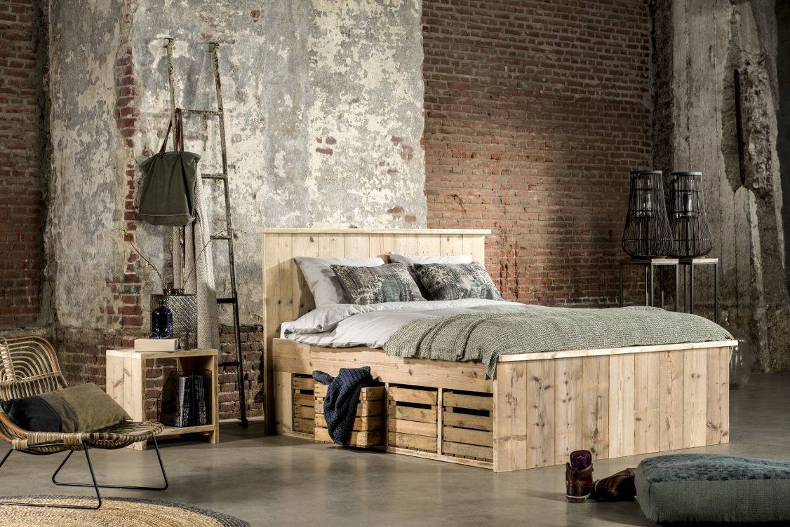 Для оформления спальной комнаты в стиле гранж очень важно выбрать качественную и практичную кровать. Она не должна выделяться из общего стиля помещения — лаконичная и негромоздкая. Материал изготовления – древесина
