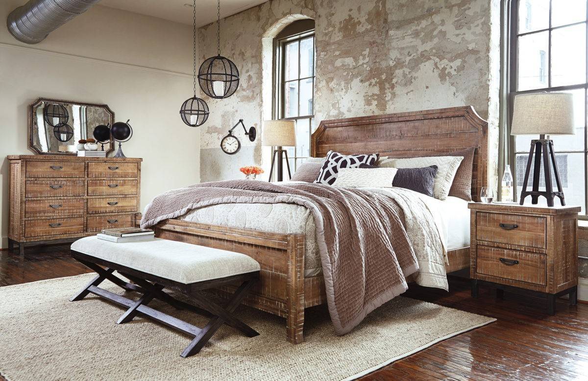 использование искуственно состаренных деревянных панелей для создания стиля гранж в спальне