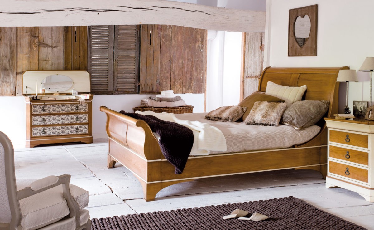 - Присутствие в обстановке старинной или искусственно состаренной мебели с плавными простыми формами.