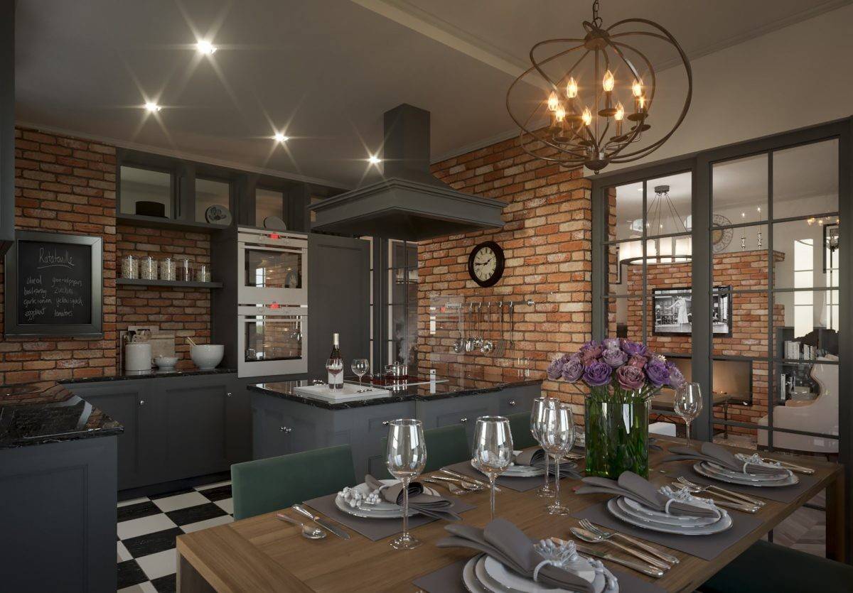 - Отделку помещений посредством простых натуральных материалов (камня, кирпича, древесины).