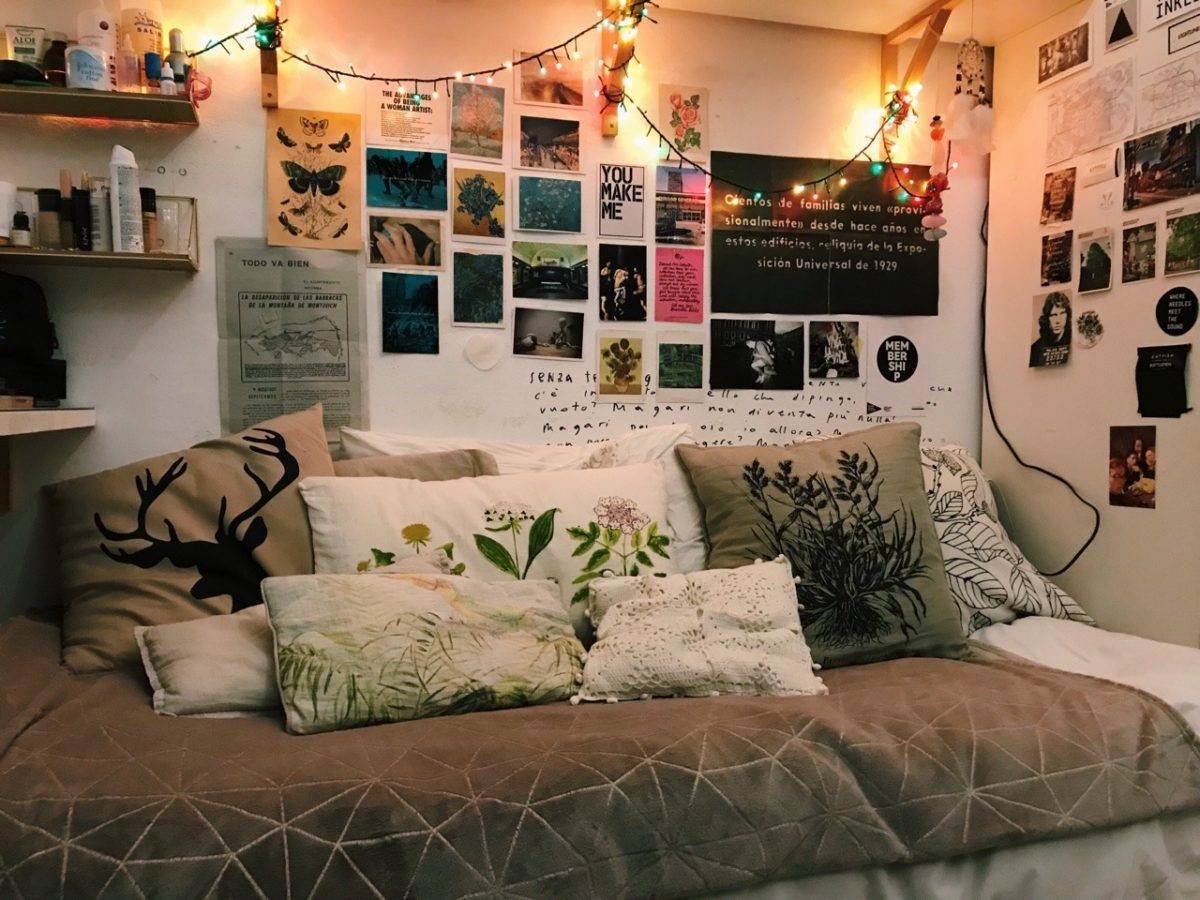 Не чурается стиль гранж и милых безделушек в интерьере, вроде диванных подушечек всевозможных размеров и форм, ковров, статуэток из прошлого. С их приходом в обстановке появится стабильный уют, а ведь это главная стилистическая задача!