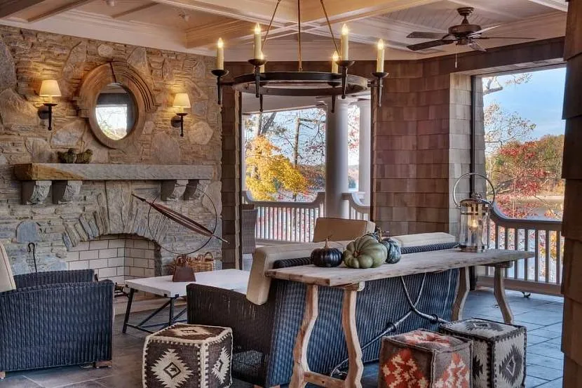 Правило четвертое: гранж любит комфорт и уют.В принципе, это можно сказать практически про любой стиль интерьера. Но в нашем случае речь идет об организации мест для отдыха. Дело в том, что респектабельная загородная жизнь не может быть полной без уютных мест для посиделок и неспешного наслаждения обществом и обстановкой.В гранже диванчики на гнутых ножках и невысокие столики встречаются повсеместно и даже по нескольку экземпляров в одном интерьере. Естественно, в непосредственной близости также находится камин, да и телевизор тоже нужен, ведь горожане даже на отдыхе не могут отказаться от информационной пищи.