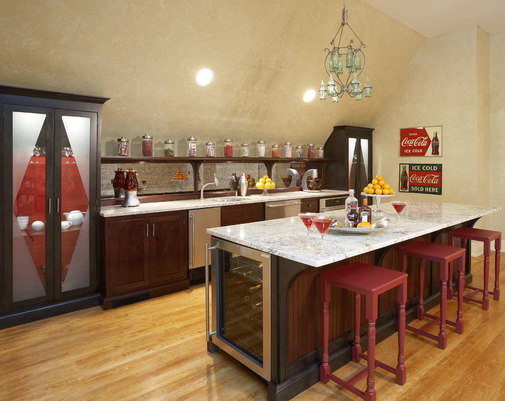Если коллекционер или ценитель вина обставил свой дом деревянной мебелью, то в общий дизайн отлично впишутся модели из натурального дерева.
