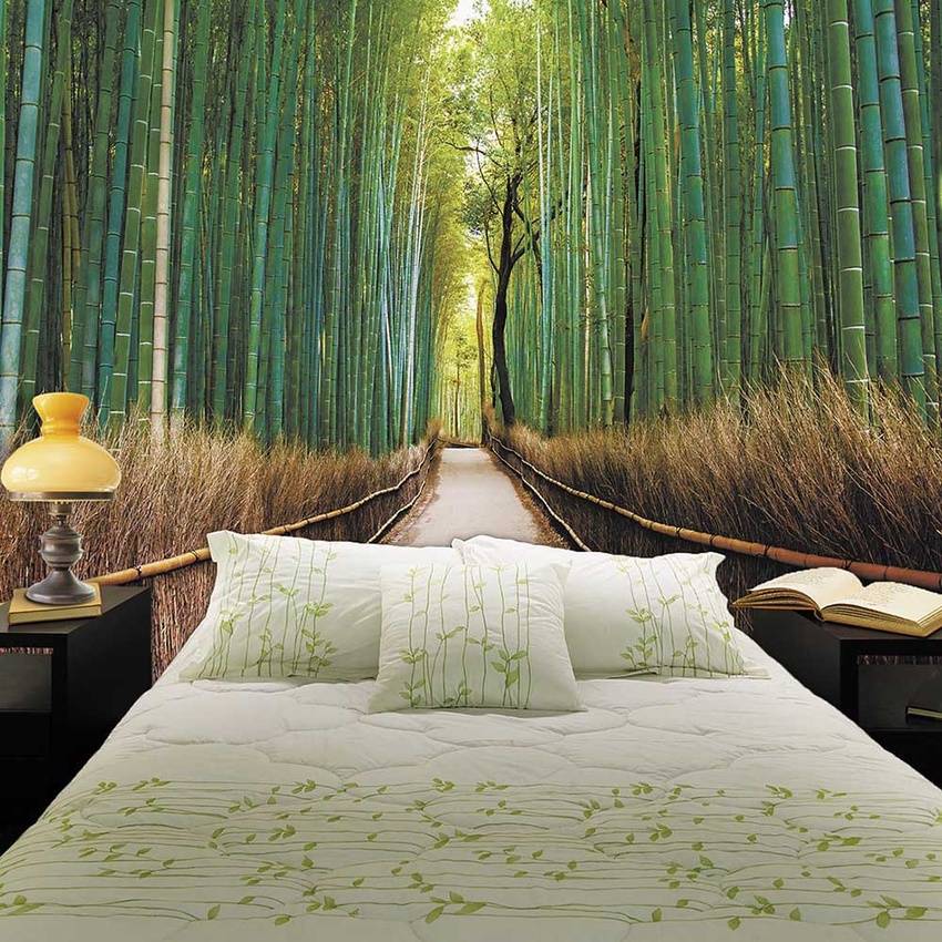 В спальне фотообои на стене смотрятся наиболее выигрышно, чем в любой другой комнате. Они визуально увеличат небольшую спальню и украсят изголовье кровати. Их наносят целым полотном или отдельными частями, в зависимости от размера и материала (тканевые фотообои изготавливаются целыми, а флизелиновые и бумажные – элементами).
