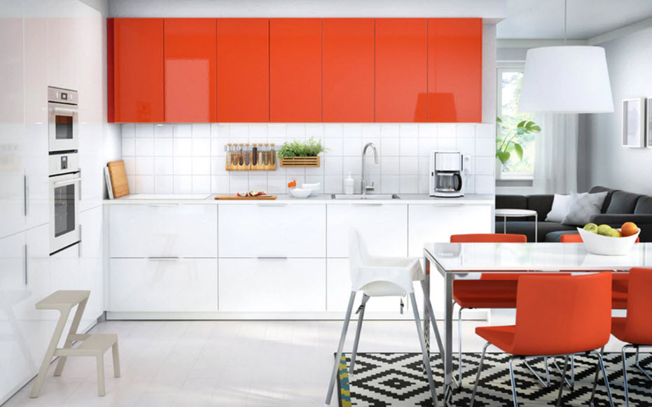 Большая часть продукции компании ИКЕА выполнена в сдержанных тонах. Это объясняется повышенным спросом на нейтральные расцветки, которые можно удачно сочетать с яркими аксессуарами и пестрой отделкой стен. Тем не менее, для привлечения различных категорий покупателей в ассортименте ИКЕА имеются кухни с красными, желтыми и зелеными фасадами. Для создания изящного интерьера с ярким гарнитуром следует внимательно прислушаться к советам дизайнеров и отделать остальные поверхности в более строгих оттенках.