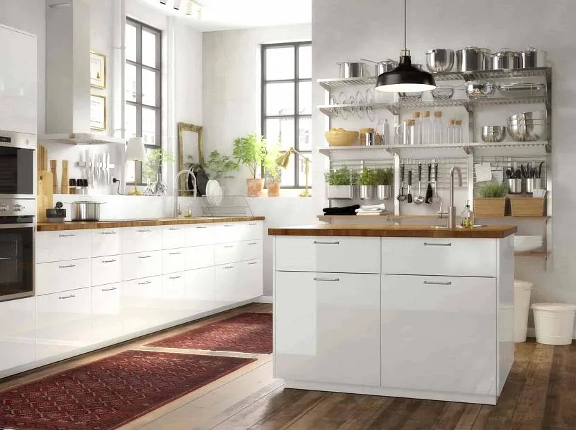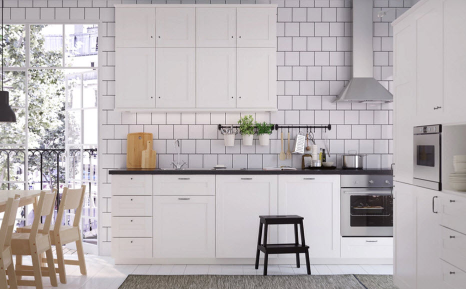 Классический вариант белой кухни оставался популярным всегда. Однако его исполнение может быть разнообразным: матовые и современные, классические глянцевые или гладкие фасады. Белые дверцы мебельного изделия помогут придать кухне красочности и чистоты. Визуально такой гарнитур расширит пространство. Покупатели мебели в Икеа нередко отдают предпочтение именно этому варианту, ведь он сочетается с любым стилем и дизайном кухни. Предметы декора в подобной обстановке будут смотреться еще привлекательнее.