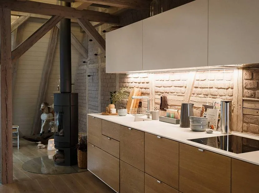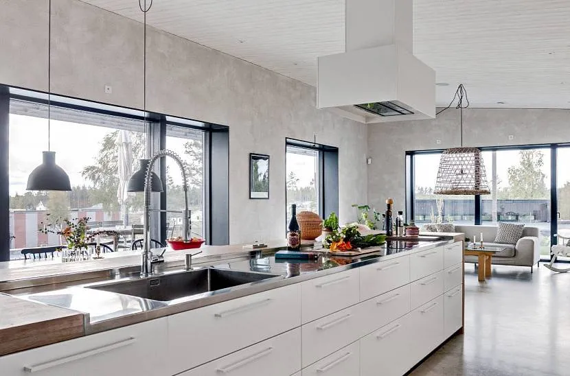 Кантри в скандинавском прочтении довольно интересно и выражается больше в аксессуарах, например, в особой форме мойки и смесителей.