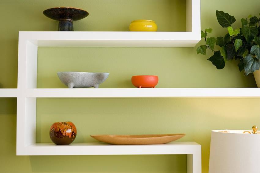 - небольшое количество объектов на открытых полках (так их легче будет протирать);