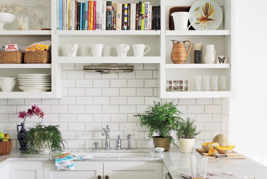 Основные преимущества наиболее распространенных открытых полок на кухне