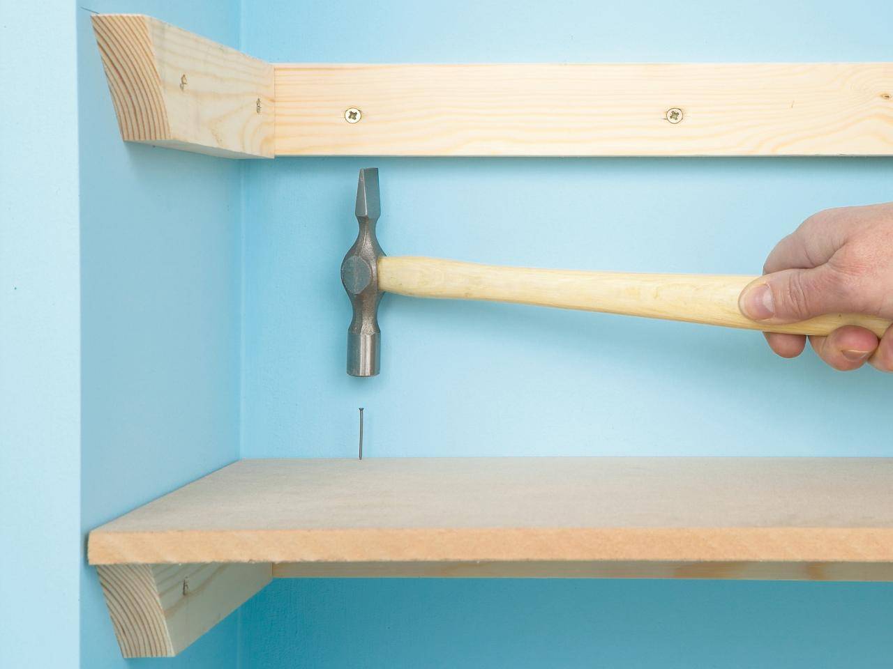 Заключительный этап изготовления – монтаж к стене. С установкой конструкции справится даже начинающий мастер. Стенку размечают, сверлят отверстия под дюбеля, закрепляют полочку саморезами, проверяют ее горизонтальность строительным уровнем, отвесом. Примерно так же делают полки из МДФ или ДСП.