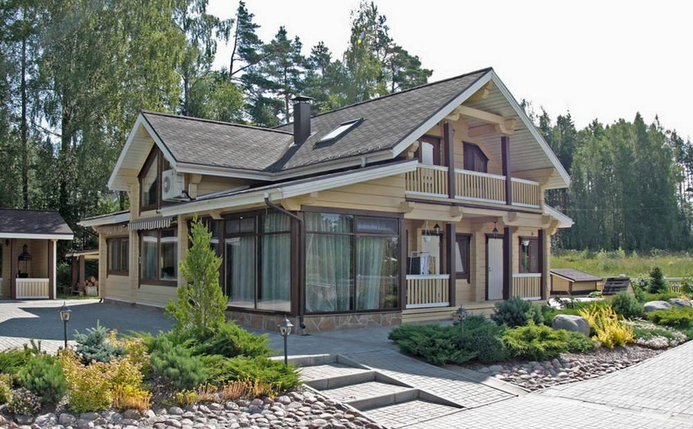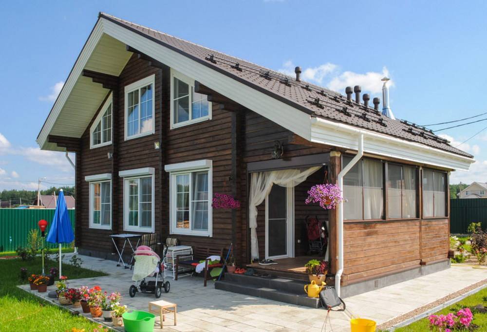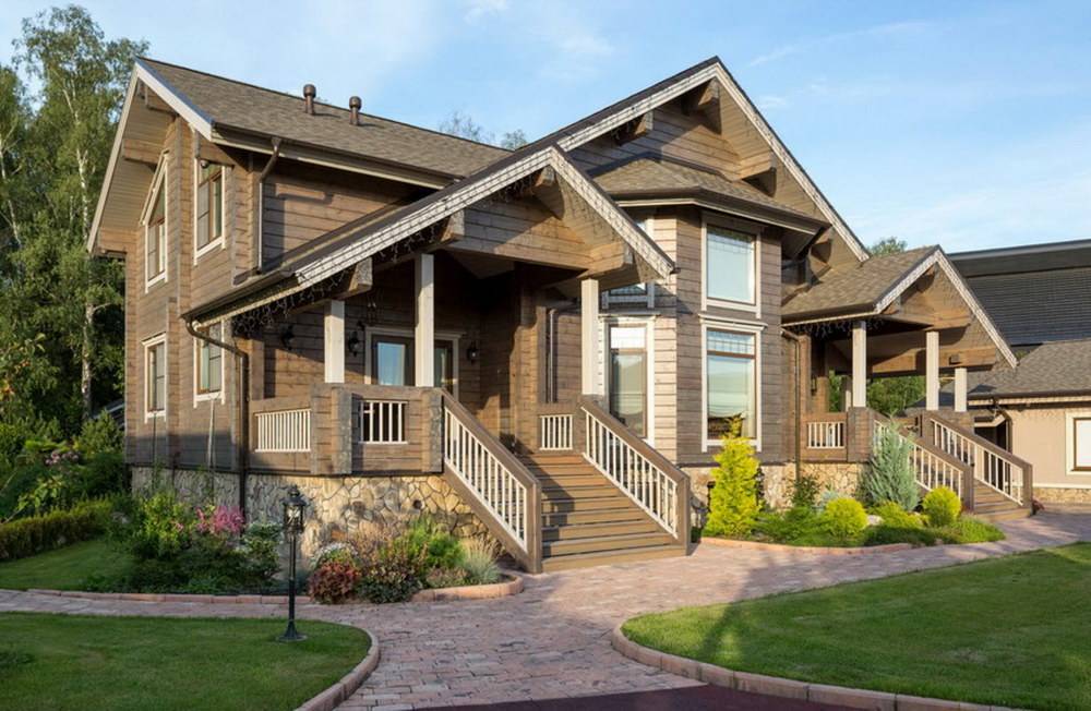 Можно встретить частные домики, украшенные деревом или деревянными панелями, постройки из бетонных блоков часто декорируют имитацией бруса.