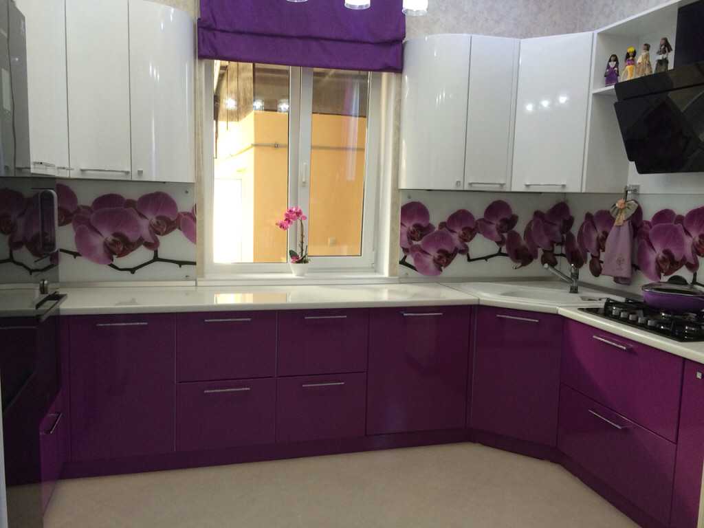 Белая глянцевая мебель наполнит помещение светом, а яркие шторы, столешница из светлого дерева, декор и картины на стенах разбавят монохромность. Только нужно помнить, что излишняя роскошь и помпезность в деталях в маленьком помещении будет выглядеть нелепо. Соблюдайте золотую середину.