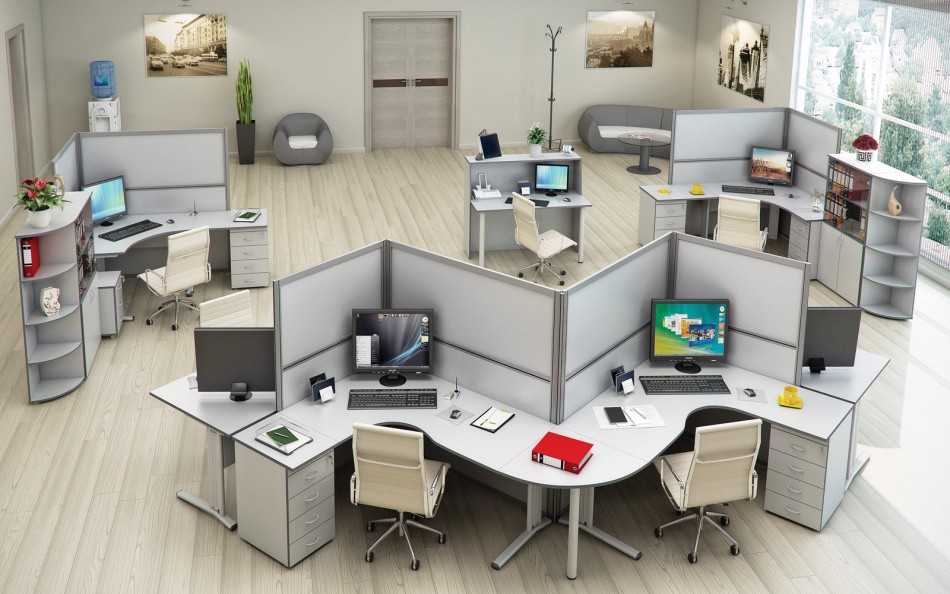 Сегодня многие компании имеют установленное количество сотрудников с перспективой увеличения количества сотрудников. Таким компаниям выгодно организовать рабочие места эргономично, разделив пространство на зоны.