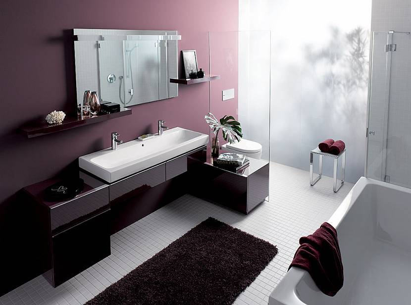 Ванная комната с мебелью сиреневого цветаИсточник krovati-i-divany.ru