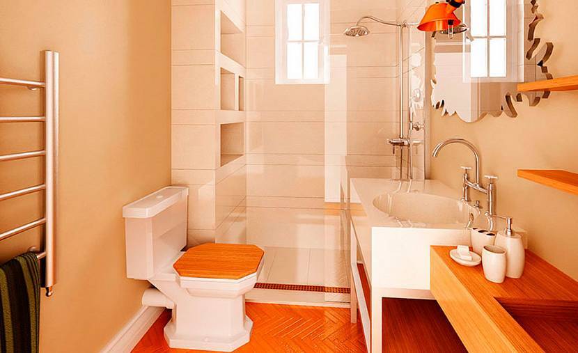 Цвет играет важную роль. Он является составной частью дизайна ванной комнаты в 5 квадратов. Для ванных комнат популярными остаются оттенки мебели: