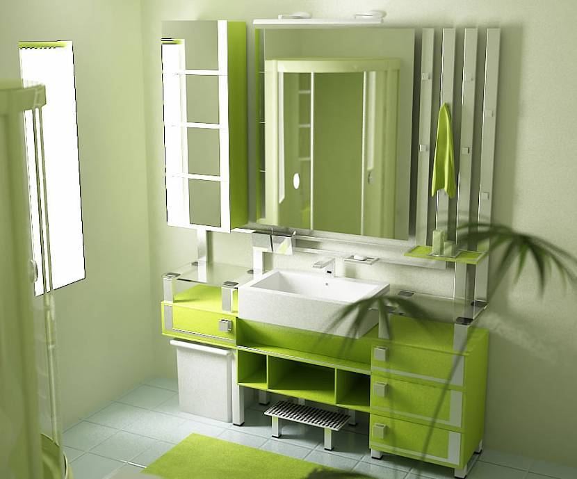 Ванная комната 5 квадратов с салатовой мебельюИсточник tradegm.ru
