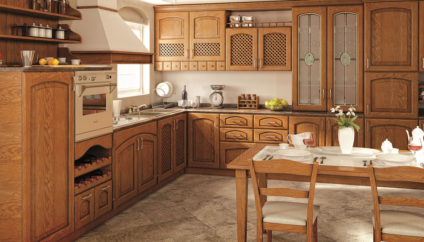 Если по вкусу домашний уют, отдайте предпочтение кухне из массива дерева. Материал позволит получить даже резные фасады, а фактура наполнит кухню особенной атмосферой.