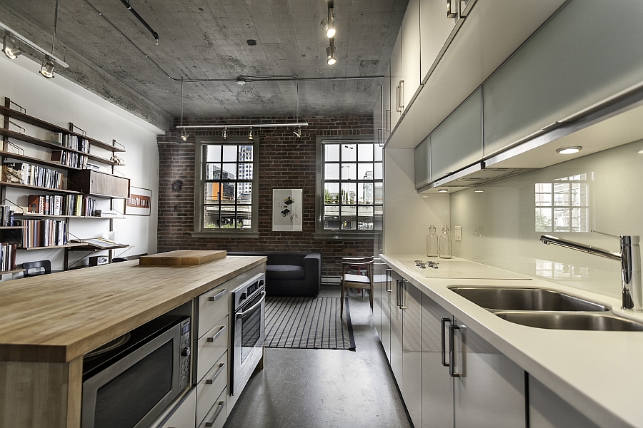 Прямой гарнитур в стиле лофт под потолок