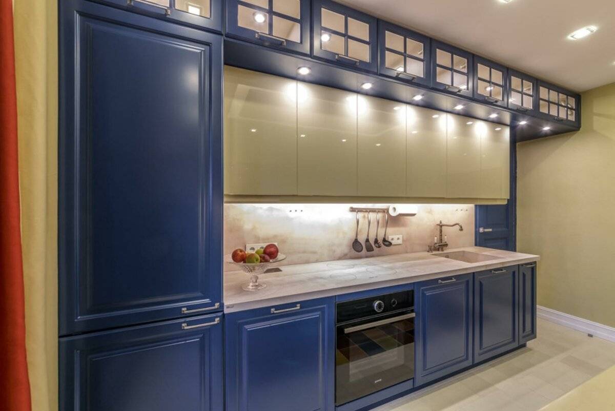 Материалы для изготовления кухни с высокими шкафами под потолок