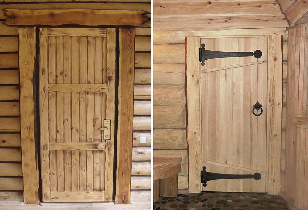 Особенности конструкции: состоят из сколоченных вместе досок с толщиной не менее 40 – 50 мм. Отличаются повышенной надёжностью, долговечностью, и механической прочностью. Как правило, весят не менее 40 – 60 кг, требуют устройства усиленной коробки и мощных стальных петель.