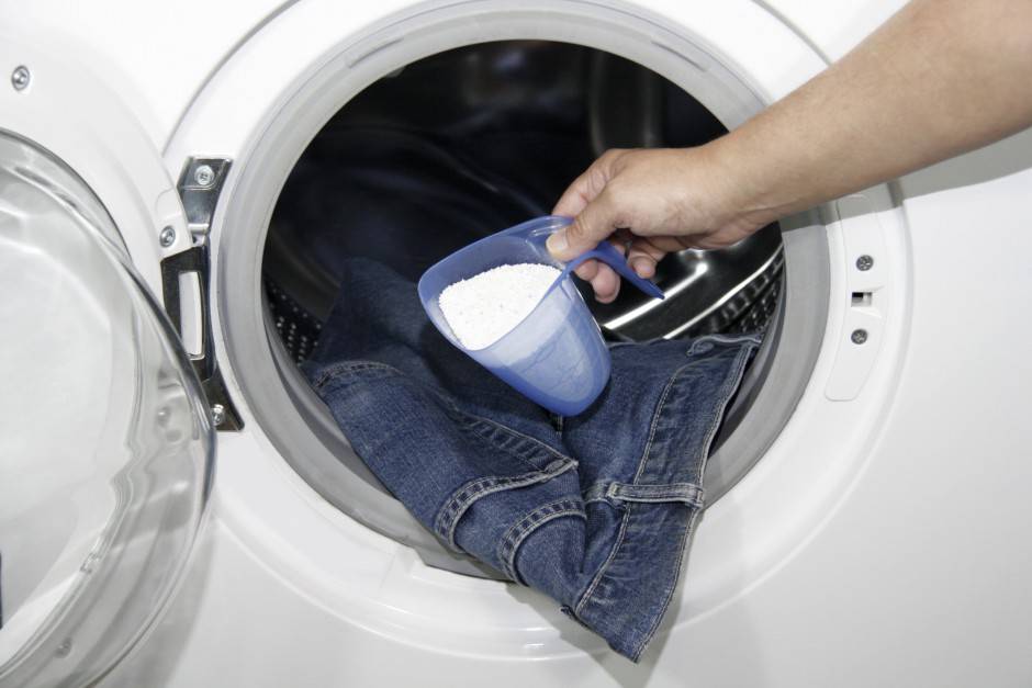 - Вещи нужно намочить холодной водой и поместить в барабан стиралки.