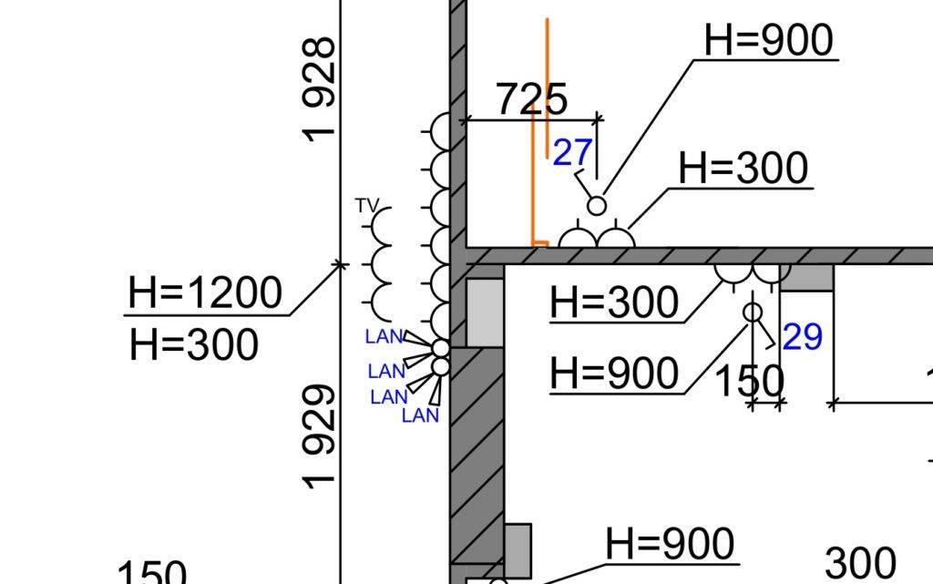 Вот из другого проекта. Я уж не говорю о том, что розетки рисовать надо не так, чтобы потом с лупой их рассматривать, сколько там палочек нарисовано.