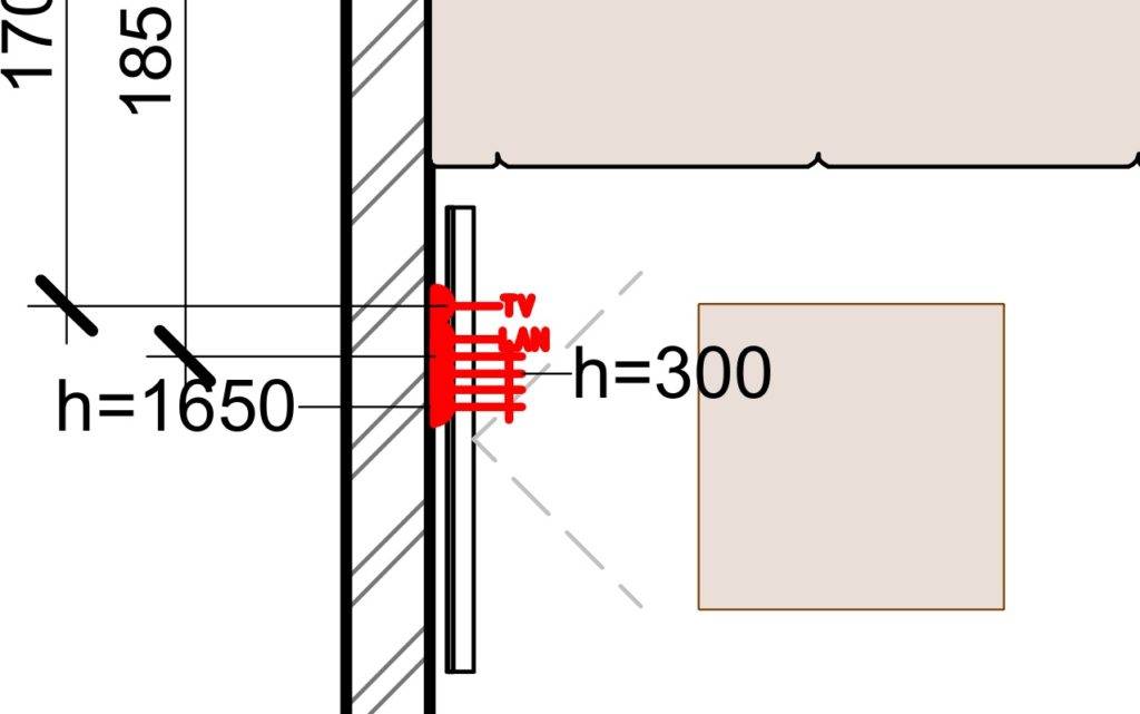 Могу, кстати, ещё очень посоветовать перед тем, как рисовать телевизионные розетки, уточнять, есть ли в доме вообще магистральное телевидение, в большинстве случаев в многоквартирных домах его уже нет, значит, и розетки не нужны, что поменяет всю расстановку розеток. А если телевидение есть, оно может быть не нужно заказчику, всё через интернет доступно.