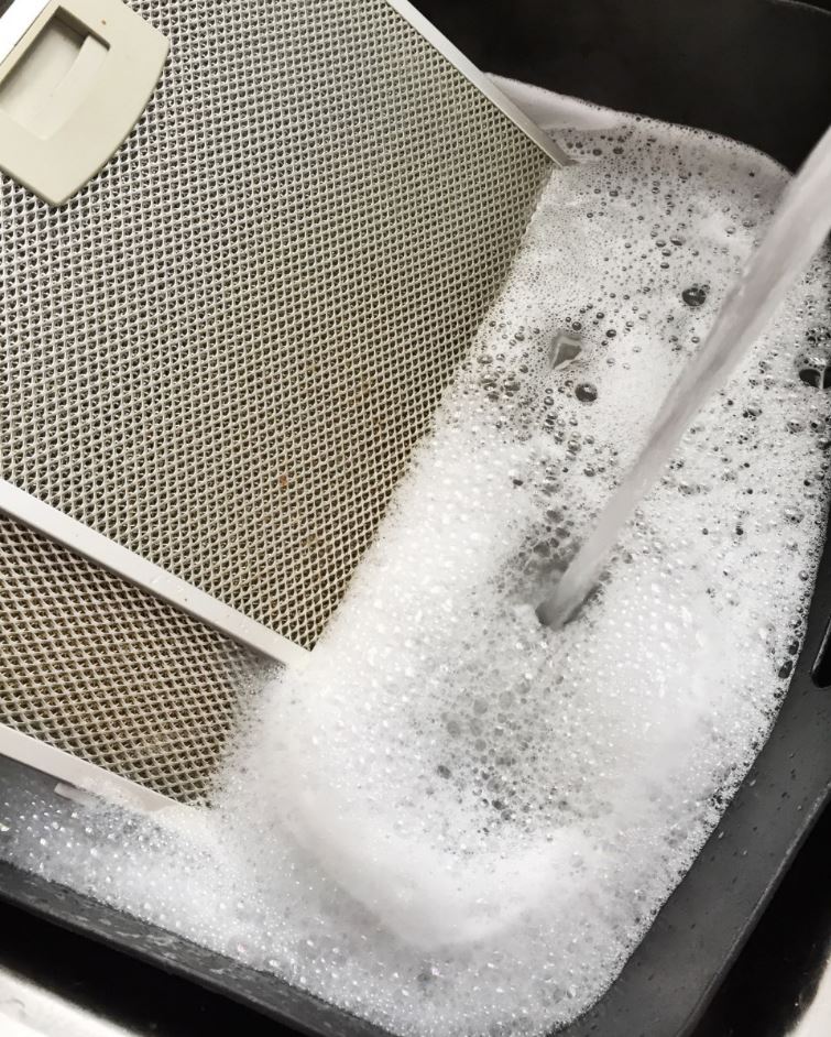 Перед использованием химического препарата необходимо надевать прорезиненные перчатки. В нержавеющую емкость (раковину) наливается вода так, чтобы фильтр был полностью покрыт, и добавляется чистящее вещество. Фильтр выдерживается в растворе 15 минут, далее жирный налет легко удаляется. Предварительно рекомендуется ознакомиться с инструкцией по применению препарата, так как некоторые вещества нельзя использовать в горячей или холодной воде.