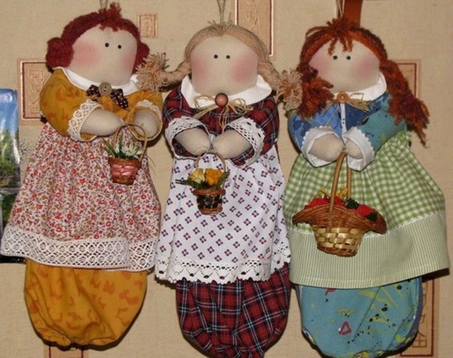 Если вы считаете, что кукле на кухне не место, то используйте вместо нее простой мешочек, сшитый из красивой ткани. Его можно будет повесить у выхода из комнаты либо рядом с кухонными полотенцами.