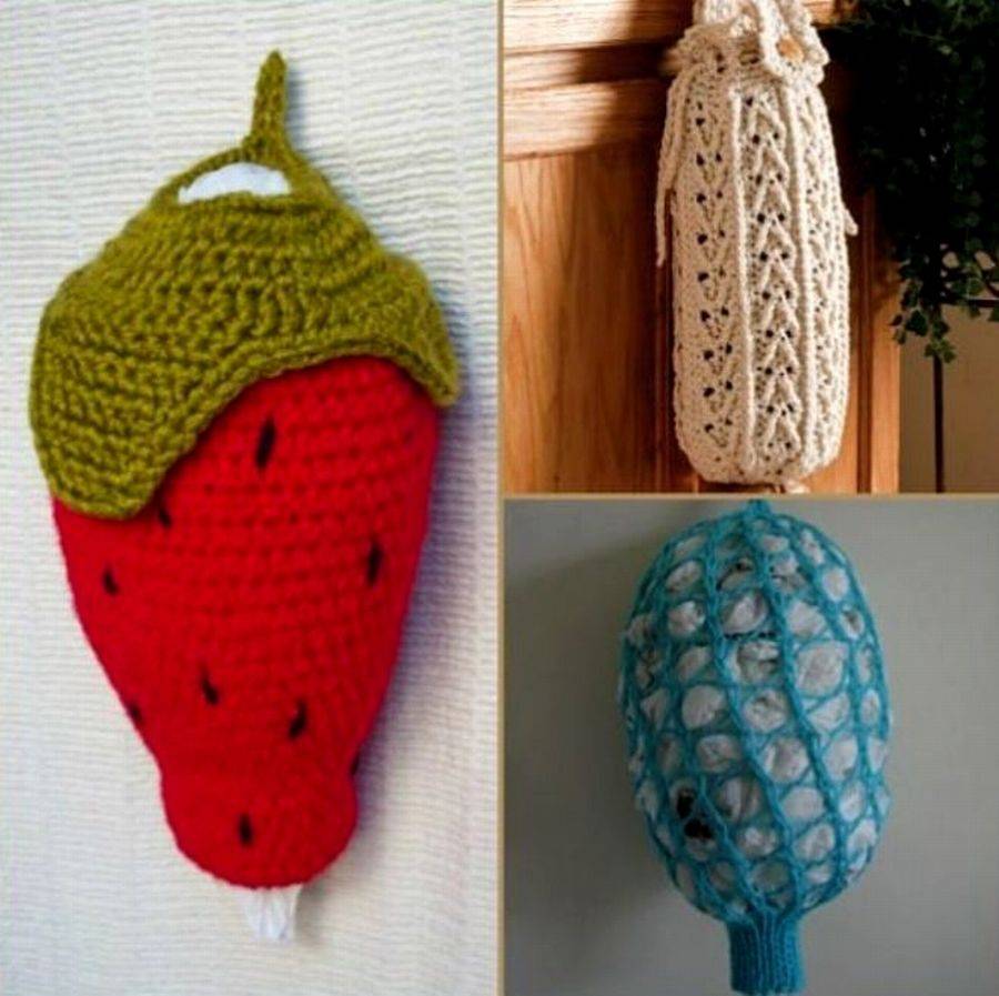 Вязаные пакетницы из остатков пряжи на кухне очень функциональны.