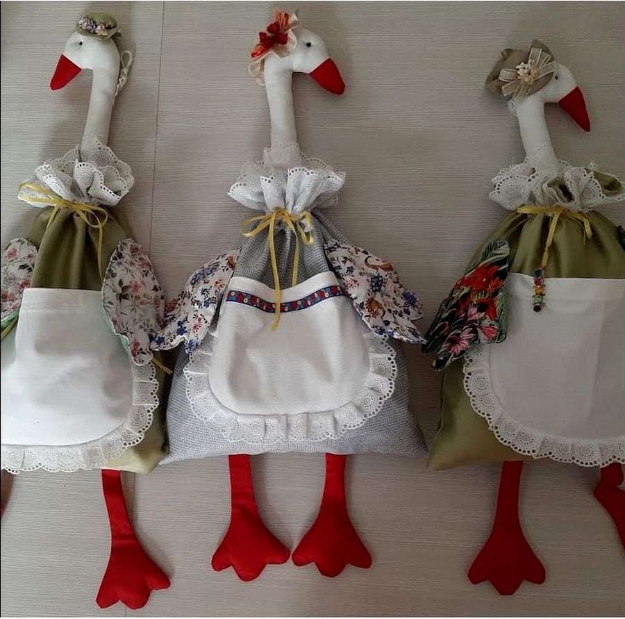 Вот пакетницы в виде гусей. Вообще, домашние птицы – очень популярные персонажи на роль пакетниц.