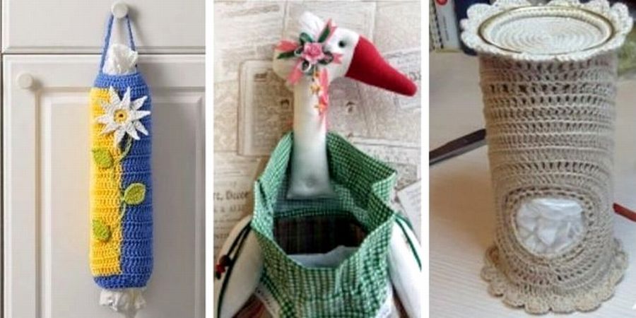 Большое подспорье, когда хозяйка умеет рукодельничать. Сшить, связать оптимальное место для хранения пакетов можно в виде зверушки, куклы, машинки. Это будет интересный и необычный предмет интерьера, вызовет неизменное восхищение гостей.