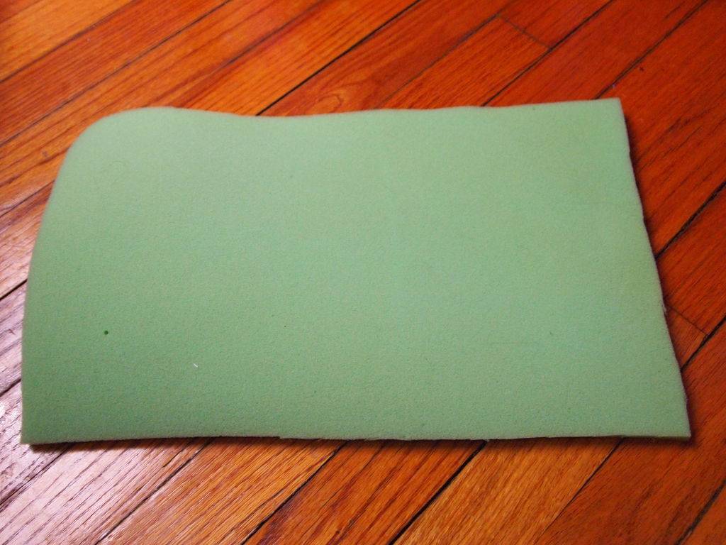 - Вырезаем из ковролина три квадрата для покрытия домика изнутри. В одном из них прорезаем отверстие для входа.
