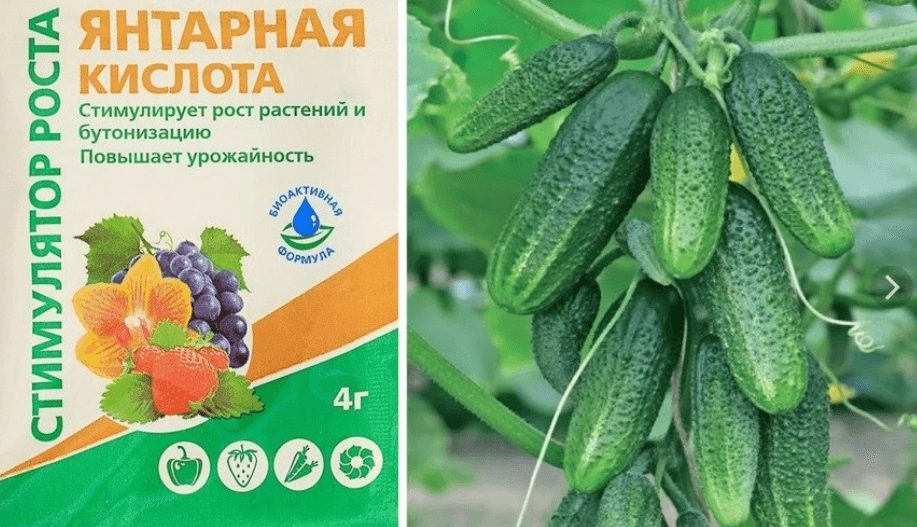 Стимулировать всходы и рост огурца огородники рекомендуют приготовленной янтарной жидкостью. Ее концентрация рассчитывается по типу почвы и степени развития огурца. Само порошкообразное средство вряд ли назовешь удобрением, оно не вносит в почву полезные микроэлементы, но влияет на рост и плодоношение.