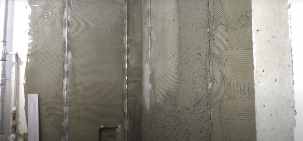 В плиточных работах, наоборот, приветствуются минимальные толщины прослойки между стеной и плиткой.