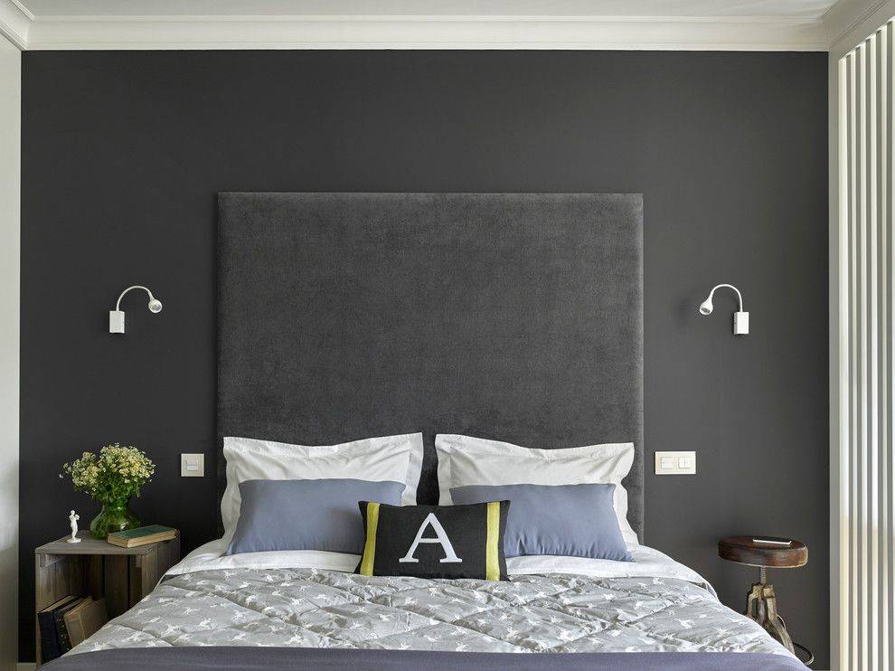 Дальнейшие варианты зависят от мебели и зон, которые предусмотрены в спальне. Если это рабочий стол — правила будут те же, что для гостиной и детской. Если хотите повесить телевизор — тоже учитывайте рекомендации, перечисленные выше.